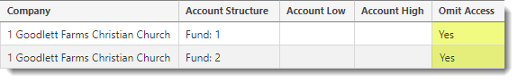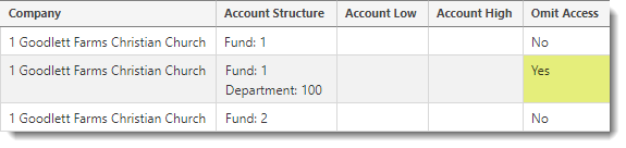 - If there are both Omit Access and Non-Omit Access detail lines assigned to a user, then the user only has rights to the Non-Omit Access details lines.