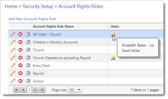 icon to view the users that have been assigned to that Account Rights role.