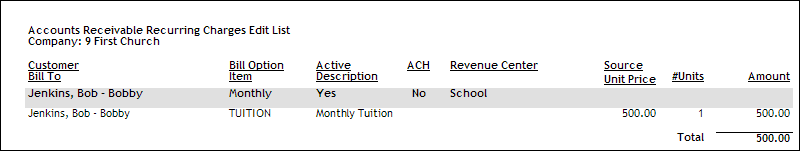 Recurring Charge Edit Report
