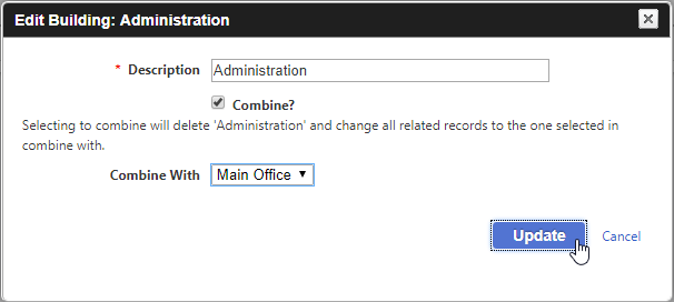 - Click the Update button to combine the types, or click the Cancel link to return to the grid.