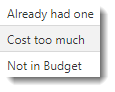 - Reason Rejected: The Reason Rejected item is assigned to Requests and can be used to filter on the Manage > Requests page. Some examples of Reason Rejected types are listed below.