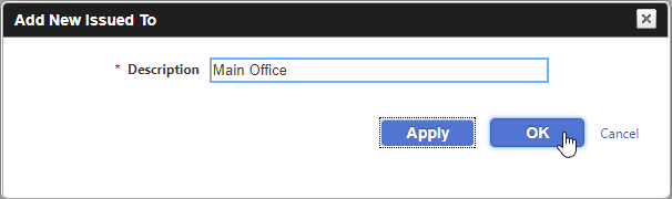 - Issued To: The Issued To item is assigned to Requests and can be used to filter on the Manage > Requests page. Some examples of Issued To types are listed below.
