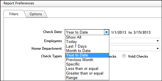 - Check Date. Additional date filters may appear depending on what option you choose.