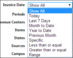 - Invoice Date: Select the invoice date range from which you want to view sales information. Additional date filters may appear depending on what option you choose.
