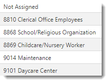 - Workers' Compensation: The Workers' Compensation item is assigned to an employee on the Employee Information page under the Compensations tab. It is used for generating a Workers Compensation report. Some examples of Workers' Compensation types are listed below.