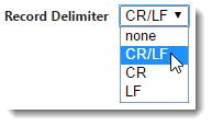 Record Delimiter: Records can be delimited by either a Carriage Return (CR), Line Feed (LF) or both (CR/LF). If the record is not delimited by any of these select the "none" option.