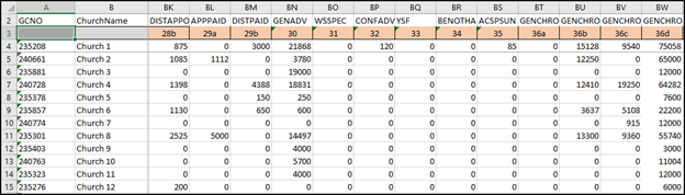 - Church ID Column: (e.g., A)