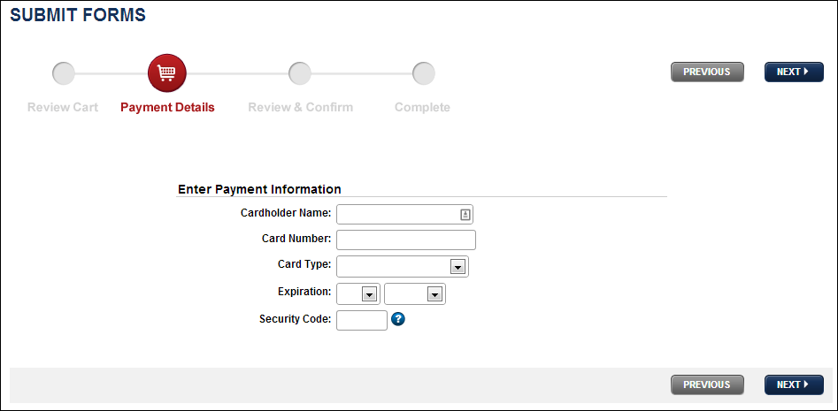 Submit Forms - Payment Details: