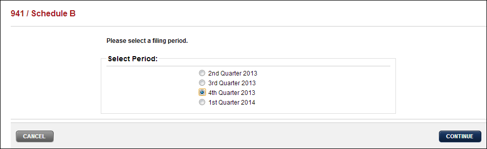 When prompted to Select Period make your quarter selection and click Continue.