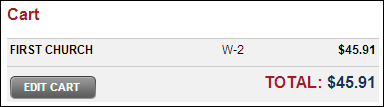 On the left side of the screen review your Cart including the name of your payer(s) (company) and the total amount. Click the Edit Cart button to return to the Review Cart screen.
