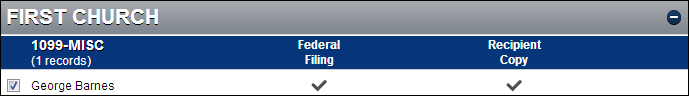 The grid displays a header for each Payer (Company) that you have exported to E-File. In the grid remove the check from any vendor for which you do not want to file electronically. The Recipient Copy column has a check if you are using that service.