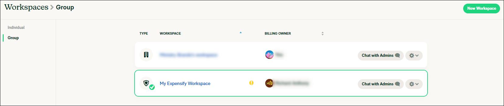 NOTE: There are two types of workspaces, Individual and Group. Only Group is supported.